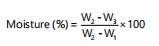 Moisture content determination: An empty crucible was dried in an oven (Microsil, India) for about 10 min and allowed to cool in a desiccator containing calcium chloride for about 20 min and then weighed (W1). Five grams of the sample was weighed into the Petri dish (W2) and placed in an oven at 105°C. It was then brought out, cooled in a desiccator, and weighed (W3). The procedure was repeated until a constant weight is obtained6: