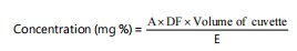 The calibration curve was plotted and the concentration of the sample was extrapolated12.